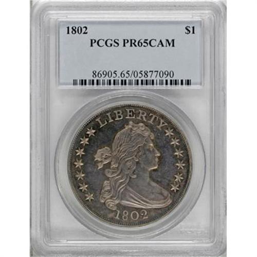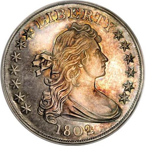 <B>1802 $1 PR65 Cameo PCGS.</B></I> B-8, BB-302, High R.7.<B> </B></I>The 1802 proof novodel silver dollar is an issue that is usually grouped by numismatists with three others: the 1801 proof novodel, the 1803 proof novodel, and the famous 1804 silver dollars. Like the 1804 dollar, which has been referred to as the "King of American Coins" for more than a century, the 1802 proof novodels were manufactured in a minuscule quantity, sometime after 1832. No more than a dozen of the 1802 proof novodels were struck, and only four pieces are definitely confirmed to exist, based upon the following roster of auction appearances:<BR><BR><B> 1. The Boyd Specimen:</B></I> Captain John W. Haseltine; Virgil Brand; F.C.C. Boyd "World's Greatest Collection" Sale (Numismatic Gallery, 1/1945), lot 119; Milfred H. Bolender (M.H. Bolender's 183rd Sale 2/1952), lot 175; New York Collection; "Groves" Collection sale (Stack's, 11/1974), lot 443; Four Landmark Collections Sale (Bowers and Merena, 3/1989), lot 1981; Superior Galleries, 1/1993, lot 615; The Rarities Sale (Bowers and Merena, 8/1999), lot 245. <B>(Plate coin in Breen's </B></I><B><I>Proof Encyclopedia</B></I></B></I><B> and his </B></I><B><I>Complete Encyclopedia.)</B></I></B></I><BR><BR> <B>2. The Cleneay Specimen:</B></I> Captain John W. Haseltine; Thomas Cleneay Sale (S. Hudson Chapman and Henry Chapman, 12/1890), lot 949; Peter Mougey Sale (Thomas Elder, 9/1910), lot 962; John P. Lyman Sale (S. Hudson Chapman, 11/1913), lot 14; H.O. Granberg Sale (B. Max Mehl, 7/1919), lot 30; Virgil Brand (journal id #92339); B. Max Mehl private treaty sale 1/1937 to Ambassador and Mrs. R. Henry Norweb; Norweb Sale (Bowers and Merena, 11/1988), lot 3770; Don Hosier (Superior, 2/1991), not sold; Jack Lee Collection III (Heritage, 11/2005), lot 2199.<BR><BR> <B>3. The Wilharm Specimen:</B></I> Ex: Captain John W. Haseltine; Dr. G.F.E. Wilharm Collection (B. Max Mehl, 2/1921), lot 592; Virgil M. Brand Estate, via B.G. Johnson; William Forrester Dunham Collection (B. Max Mehl, 6/1941), lot 1055; 1942 ANA Convention Sale (Abe Kosoff); Michael F. Higgy Collection (Abe Kosoff, 9/1943), lot 817; Beverly Hills Stamp & Coin Co. (Max L. Justus FPL, 8/1957); Abe Kosoff; Ken Nichols; Newport Balboa Savings and Loan; Abe Kosoff; unknown intermediaries; Autumn Sale (Stack's, 9/1978), lot 304; Ellis H. Robison Collection (Stack's, 2/1982), lot 1884; Larry Whitlow; Larry Hanks (Superior, 7/1984), lot 171, not sold; subsequently sold by Larry Hanks to Pennsylvania collector; Harry Einstein Collection (Bowers & Merena, 6/1986), lot 1734; The Worrell Collection (Superior, 9/1993), lot 1301; Seymour Finkelstein Collection (Stack's 10/1995), lot 696; Philip Flanagan Collection (Bowers & Merena, 11/2001), lot 4297.<BR><BR><B> 4. The Newcomer Specimen:</B></I> Captain John W. Haseltine; Waldo C. Newcomer; Colonel E.H.R. Green via B. Max Mehl (ca. 1932); Jack Roe Collection (B. Max Mehl, 6/1945), lot 427; Will W. Neil Collection (B. Max Mehl, 6/1947), lot 29; Amon Carter, Sr.; Amon Carter, Jr. (Stack's, 1/1984), lot 239; L.R. French, Jr.-French Family Collection (Stack's, 1/1989), lot 13; David Queller-Queller Family Collection. <B>The present specimen.</B></I> <B>(Plate coin in Newman and Bressett's </B></I><B><I>The Fantastic 1804 Dollar</B></I></B></I><I>.</B></I><B>) </B></I><BR><BR> Much confusion has reigned in the numismatic universe where these problematic coins are concerned, which is unsurprising when one considers the deliberately clandestine nature of the 1801-1803 proofs, as well as the 1804 dollars. Numismatic heavyweights such as Walter Breen, Q. David Bowers, Eric P. Newman, and John Dannreuther (among many others) have attempted to deconstruct the history of these fascinating pieces, and have drawn at least some conclusions that seem logical and supported by the relatively few known facts of the case.<BR> In his monumental 1993 work <I>Silver Dollars and Trade Dollars of the United States: A Complete Encyclopedia, </B></I>Q. David Bowers outlines the following sequence of events: He believes the novodel dollars were produced from dies that Mint Director Samuel Moore instructed Chief Coiner Adam Eckfeldt to prepare in 1831, in anticipation of a resumption in the coining of silver dollars that never actually occurred. Since the Draped Bust motif had not been used on any U.S. coin since the 1808 half cent, Eckfeldt had to consult old Mint records to ascertain that 1804, 1803, and 1802 were the last years that dollar production featured this design. (What he did not know, however, was that the 1804 delivery contained dollars dated 1803.) By the end of 1831, the Philadelphia Mint had on hand one incomplete obverse die, three obverse dies dated 1802, 1803, and 1804, respectively, and two distinct reverse dies (designated X and Y by Eric P. Newman and Kenneth E. Bressett in their 1962 book <I>The Fantastic 1804 Dollar).</B></I> Between that year and 1836, the so-called Class I 1804 silver dollars, of which the King of Siam and Imam of Muscat specimens are the most famous examples, were produced. <BR> The Bowers theory continues that after their completion sometime in 1831, the Mint locked the novodel dollar dies away for several decades, retrieving the 1804 obverse die along with reverse die X to strike the Class I or "Original" 1804 dollars between 1833 and 1836. The 1804 obverse die was reused, circa 1858, along with reverse die Y to strike the Class II and Class III specimens. The remaining four dies remained tucked away until the early 1870s. Sometime during 1873-1876, Mint Director Henry R. Linderman entered the story of the novodels. Under his direction, a Mint employee retrieved the 1802, 1803, and undated obverse dies from the vault, added stars and the 1801 date to the previously incomplete obverse die, mated the three obverses with reverse die X of the Class I 1804 dollar, and produced fewer than 25 novodels dated 1801-1803. To support this assessment, Bowers cite