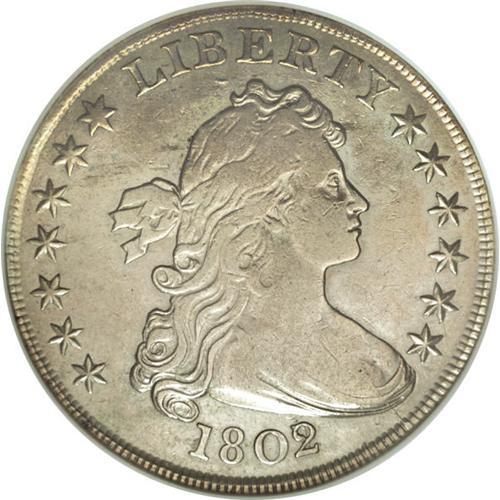 <B>1802/1 S$1 Wide Date VF30 ANACS.</B></I> B-9, BB-235, R.5. Die State III. The original Bolender silver dollar reference was published in 1950, and this variety was discovered by Bolender a short time later. In fact, it was actually discovered during production of the original edition of his reference, with a description included in the text, but it was not illustrated as the plates had already been sent to press. Many more examples have been discovered since the first notice, with about 50 specimens known today. This piece is an attractive light silver-gray example with smooth surfaces and a tiny rim bruise on the reverse.<BR><I>Ex: John Haugh Collection (Ira & Larry Goldberg, 2/02), lot 1185.</B></I><BR><BR><b>Shipping:</b> Coins & Currency (<a target="_blank" href="http://www.heritageauctions.com/common/shipping.php">view shipping information</a>)