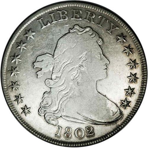 <B>1802/1<S$1> Wide Overdate. B-9, BB-235, R.4. VF25 NGC.</B></I> Overdate, die flaw between B and curl point; Outer arrow point below left upright of N. Reiver die state b. Bowers-Borckardt die state II. <B>This is the Reiver plate coin for the obverse of this variety in his book.</B></I> Bright and untoned save for a hint of peripheral gold. A middle to late die state with the obverse cracked to Liberty's bust, plus a faint crack through the 802 of the date, and another crack from the rim through star twelve. Identifiable by a minor dull scratch in the small field between the arrow points and the wing above touching the shield. A well struck coin that should suit most collectors, and this variety has remained one of the scarcer die pairings of the year since its discovery just prior to the publication of Bolender's 1950 Early dollar book.<BR><I>Ex: Paramount (July, 1973).</B></I> Envelope Included.