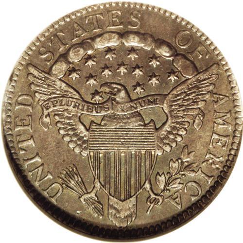 <B>1802<10C> AU55 NGC.</B></I> JR-2, R.5. An impressive piece with intricate design details throughout, aside from slight flatness on the highpoint of the shoulder. Apple-green and gold tints emerge when the coin is turned beneath a light. Luster dominates the hair, plumage, and shield. Adjustment marks are absent, and abrasions of any consequence are limited to a tick on the obverse rim at 3:30 and a short diagonal mark near Liberty's temple. Unlike its half dime counterpart, the 1802 dime is not a famous rarity. But only 10,975 pieces were struck, and these were distributed among four die pairings. More than half of all survivors are JR-4, although JR-2 is more available than the very rare JR-3 and the extremely rare JR-1. Census: 3 in 55, 2 finer (4/06).