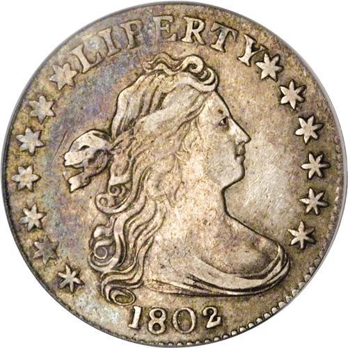 <B>1802 10C XF40 PCGS.</B></I> JR-2, R.5. Star 7 nearly touches the L and star 8 nearly touches the Y in LIBERTY. Die lines close both loops of the small 2 in the date. On the reverse the stars are arranged 6-5-1-1, and T3 is over the left quarter of cloud 3. Although rare, this is the second most common of 1802 dime varieties, constituting about 30% of examples seen, according to <I>Early United States Dimes 1796-1837.</B></I> Moderate luster still graces the surfaces, which are lightly coated with amber-gold, russet, and steel-gray patina. Die misalignment is responsible for weakness through the eagle's tail feathers and UNI, and on the obverse at BE. Both sides are free from any singular distractions, and the fields show only light chatter consistent with the grade.<BR><BR><b>Shipping:</b> Coins & Currency (<a target="_blank" href="http://www.heritageauctions.com/common/shipping.php">view shipping information</a>)
