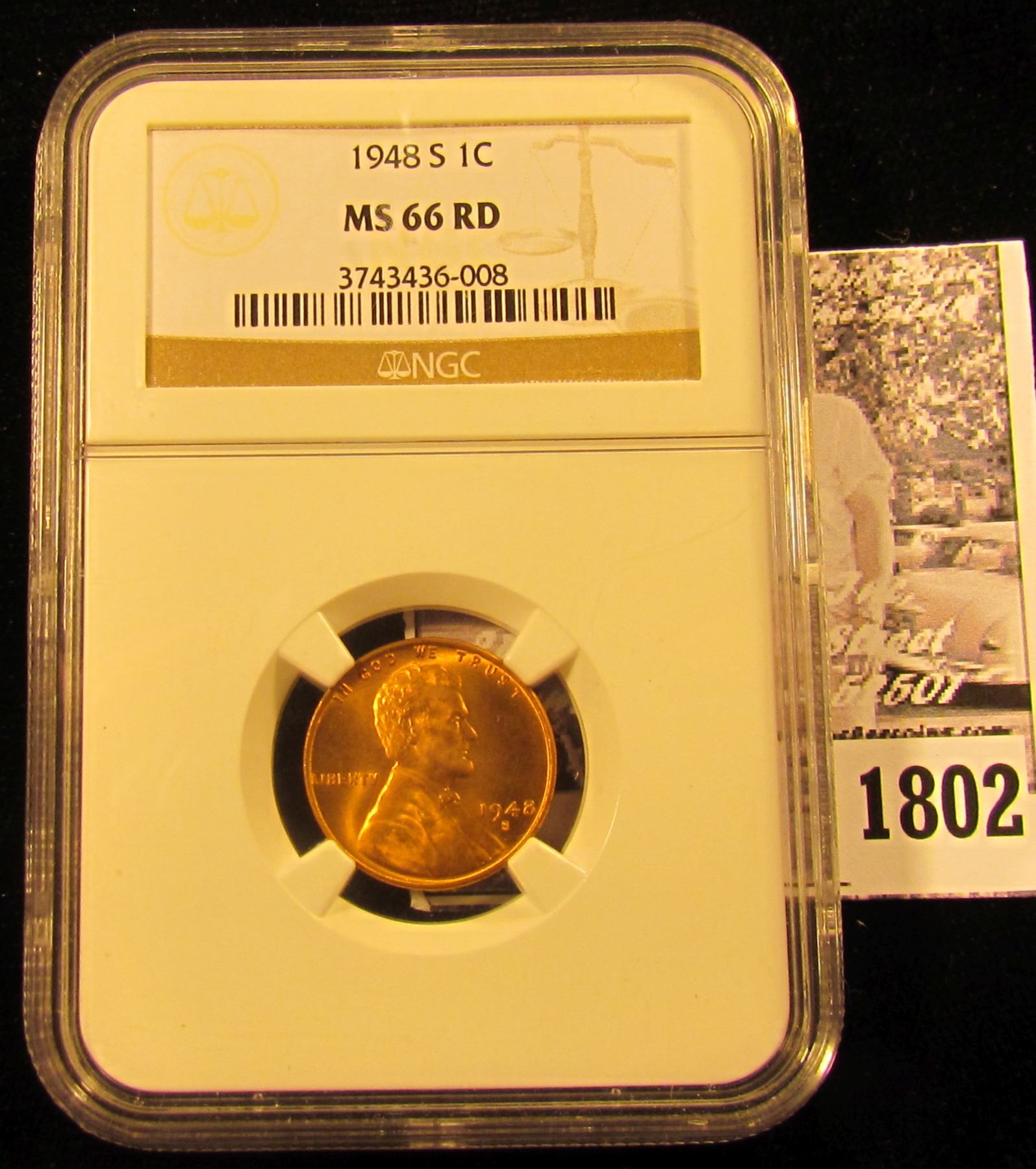 1802 . 1948 S Lincoln Cent NGC slabbed MS66 RD.