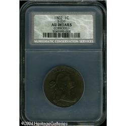 1802 1C AU Details, Corroded, NCS. S-237, R.2. A l <B>1802 1C AU Details, Corroded, NCS.</B></I> S-237, R.2. A later die stage with a rim break above STAT. This olive-brown Draped Bust Cent is well struck aside from softness on the T in CENT, and although the color is suspect and the surfaces are faintly granular, there are no obtrusive marks or rim nicks. <BR><BR><B>Important notice:</B> Heritage usually auctions material at the rate of 200-250 lots per hour. On some occasions eBay Live bid software or the Internet may not be able to keep up with the pace of the auction. We recommend placing a realistic absentee bid now as insurance to avoid disappointment. Occasionally the auctioneer may eliminate or reject an eBay Live bid, and the auctioneer may also reopen a lot after the close of the eBay live bidding (usually because we missed an audience bid), and may reject your bid even if it shows you as the winning bidder. By bidding via eBay Live, you agree that Heritage may award the lot to another bidder at its sole discretion under the circumstances described above or any other reasonable circumstances. Since eBay bids are not shown to us until we open the lot on the floor, we treat those bids just like floor bids. In most cases the floor responds before the eBay bid is presented to us, due to Internet lag time, so for consistency we have made it a policy that floor bids are always considered first over tie eBay live bids. Also please note that all Heritage lots purchased through eBay Live carry a 20% Buyer's Premium. Please make sure you read the Terms and Conditions before you bid. This lot is being auctioned in conjunction with a live floor auction by Heritage Galleries & Auctioneers. All final auction and invoice information will be supplied by Heritage Galleries & Auctioneers, and all other information should be considered preliminary. Lot:5037