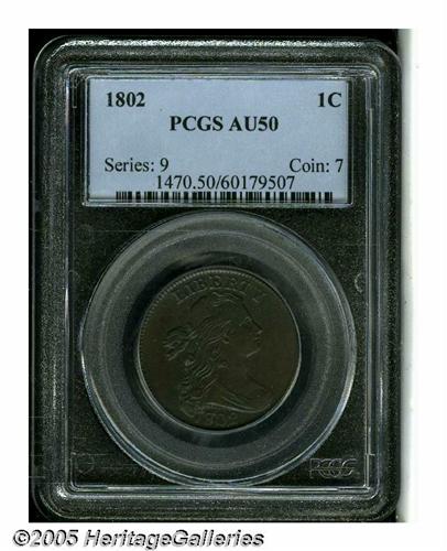 1802 1C AU50 PCGS. S-227, Low R.3. An impressive