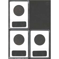 1802 1C--Corroded, Tooled, Cleaned--ANACS, VF Details, Net VG8, S-225, a glossy textured example, there is some bright crimson-orange color in the center of the obverse; 1803 Small Date, Small Fraction--Corroded--ANACS, Fine Details, Net VG8, S-247, variegated brown colors overlay both sides, there are swaths of corrosion over the upper obverse and right reverse; and an 1803 Small Date, Small Fraction--Corroded--ANACS, VF Details, Net VG10, S-256, this is a rough, olive-brown example with verdigris on both sides. 3 coins Important notice: We expect to be auctioning lots at the rate of 200-250 per hour. Sometimes eBay Premier live bid software cannot keep up with that pace, so we strongly recommend that you place a realistic proxy bid now as insurance to avoid disappointment. Also please note that all Heritage/CAA lots purchased through eBay Premier carry a 20% Buyer's Premium. Please make sure you read the Terms and Conditions.