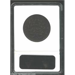 1802 1C Fine 15 ANACS. S-231, R.1. One of two Stemless Wreath varieties, and attributable by the lengthy die crack (as made) across the upper right obverse. Two-tone dark and medium purple-brown patina. The peripheral legends are not fully struck, but the centers are bold. Both sides have a few minor abrasions. Essentially free of verdigris. Important notice: We expect to be auctioning lots at the rate of 200-250 per hour. Sometimes eBay Premier live bid software cannot keep up with that pace, so we strongly recommend that you place a realistic proxy bid now as insurance to avoid disappointment. Also please note that all Heritage/CAA lots purchased through eBay Premier carry a 20% Buyer's Premium. Please make sure you read the Terms and Conditions.