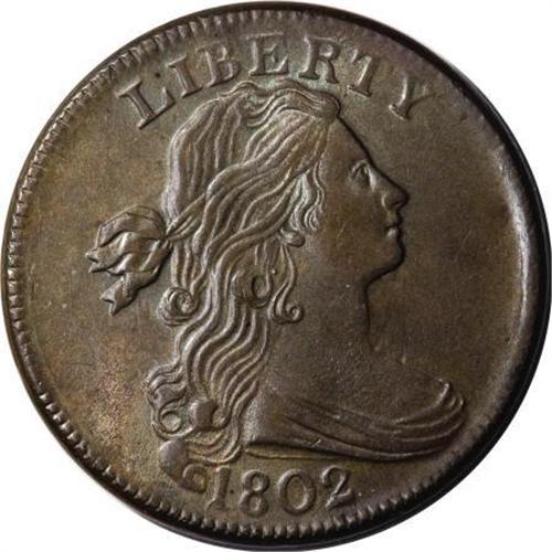 <B>1802 1C MS63 Brown PCGS. S-242, B-19, R.2.</B></I> <B>Bland AU55; tied for CC-1. Noyes AU55; CC-2. Photo #20967. Our EAC Grade MS60.<BR><BR>Equivalents. </B></I>Proskey 6; Doughty 169; McGirk 7A; Ross 3-F; Newcomb 20; EAC 19; <I>Encyclopedia </B></I>1750; PCGS #1470.<BR><B><BR>Variety. </B></I>Top hair wave below right side of E. Widely spaced denominator. The obverse appears on S-241 and S-242. The reverse appears on 1802 S-242 and 1803 S-245.<BR><B><BR>Surfaces.</B></I> A gorgeous piece with full cartwheel luster and frosty olive-brown surfaces, accompanied by lighter tan and golden-brown, the latter faded from original red. Mostly sharp design details, although the leaves show the usual blunt strike that is so prevalent among the early 19th century cents.<BR><B><BR>Die State III. </B></I>The obverse has blurred clash marks and the reverse has an arcing die crack through NITE, and another at the tops of ERICA.<BR><B><BR>Appearances. </B></I>The obverse and reverse are illustrated in Noyes (1991).<BR><B><BR>Census. </B></I>Once again, a seemingly common die variety is a condition rarity. The six finest in Bland's Census are 55-55-55-50-50-45 (3) and in Noyes' Census are 62-55-50-45-45-40 (4).<BR><BR><B>Commentary. </B></I>This variety was coined after S-241, which in turn was struck after 1803 S-243.<BR><BR><B>Provenance. </B></I><I>David Proskey; Henry C. Hines; Dr. William H. Sheldon (4/1972); R.E. Naftzger, Jr. (2/1992); Eric Streiner; Early American Coppers (4/1994), lot 282, $8,000; Anthony J. Terranova; Gary Ruttenberg (McCawley and Grellman, 8/1996), lot 228, $9,900; W.M. "Jack" Wadlington; Chris Victor-McCawley (7/2005).</B></I><BR><BR><B>Personality. </B></I>An attorney in Los Angeles, <B>Gary Ruttenberg</B></I> is a native of Detroit, Michigan. McCawley and Grellman Auctions sold his late-date collection in August 1996. He maintains collections of early-date large cents and Colonials.<BR><BR><b>Shipping:</b> Coins & Currency (<a target="_blank" href="http://www.heritageauctions.com/common/shipping.php">view shipping information</a>)