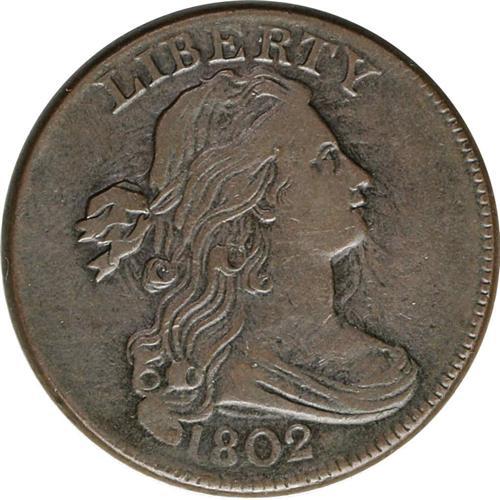 <B>1802<1C> S-227, B-5, High R.2. XF40 NGC. VF25 EAC.</B></I> Medium olive-brown color, slightly lighter on the devices, with excellent surfaces for the grade. Only a few abrasions are visible on each side. An intermediate die state with extensive obverse clash marks from the throat to the forehead. The reverse has a prominent die crack through the tops of F AMER, continuing more faintly to ICA.<BR><I>Ex: George Ramont (12/4/1969).</B></I> Envelope Included.