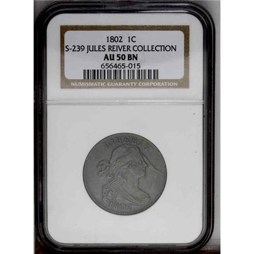1802 1C S-239, B-17, R.3. AU50 NGC. VF30 EAC. This is 1802[1C] S-239, B-17, R.3. AU50 NGC. VF30 EAC.