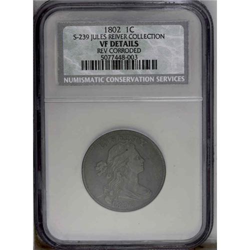 1802 1C S-239, B-17, R.3--Reverse Corroded--NCS. VF De 1802[1C] S-239, B-17, R.3--Reverse Corroded--