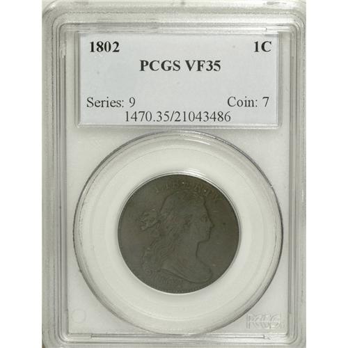 1802 1C VF35 PCGS. S-236, B-16, R.1. A deep brown exam