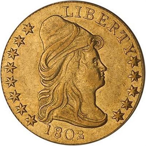 A lovely, nicely lustrous example in greenish gold. A few very minor surface marks are present. Very sharply struck although slightly weak at the center of obverse and reverse. This is clearly the most available variety among three 1802 quarter eagle die marriages. The Harry Bass Foundation, which publishes online a guide of the early gold series, estimates about 150 survivors are known from this die pair. Originally, 3,035 quarter eagles dated 1802 were struck with fewer than 10% still in existence All have the same obverse with a 2 over 1 in the date.