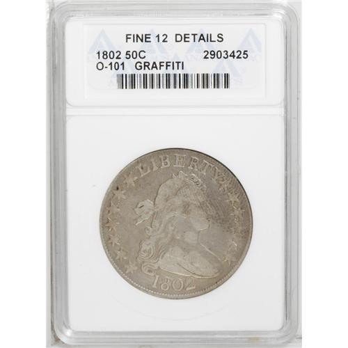 1802 50C --Graffiti--ANACS. Fine 12 Details. O-101, R.3