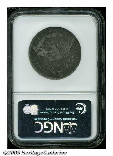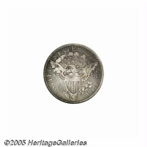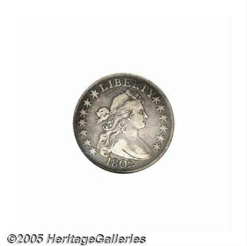 <B>1802<50C> VF30 NGC.</B></I> O-101, R.3. Die variety collectors need to obtain only one example of the 1802, since just a single die marriage is known. Apple-green, dove-gray, and apricot colors embrace this nicely detailed piece. A minor pinscratch on the right side of the horizontal shield lines is not relevant for the grade.