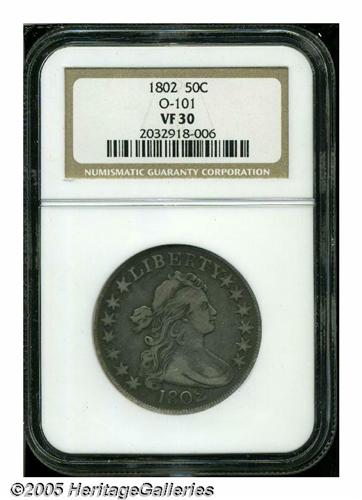 1802 50C VF30 NGC. O-101, R.3. Die variety collec