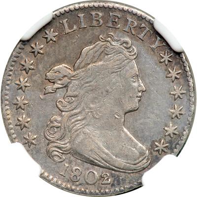 This piece is likely Condition Census for this rare variety, as the JR book notes that the finest specimen seen was an AU-55 that was formerly in the R.L. Miles collection. NGC has certified only one Mint State specimen! The rarity of the 1802 date is famous, and we expect competition for a coin of this remarkable quality will be fierce. Pop 1; 1 finer in 62.