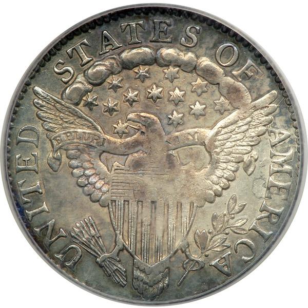 The 1802 Draped Bust, Heraldic Eagle dime has always been one of the favorite rarities in this short series that ran from 1798 to 1807. The weak obverse die state is an example of the varied output of the First U.S. Mint. We are pleased to see that PCGS understands that it actually never circulated and is, indeed, one of the desirable Mint State specimens. Pop 1; 5 finer (PCGS # 4472) .