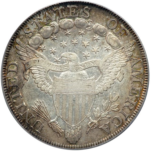 Reverse die used to strike 1801 BB-214 (typically with crack from border toward cloud 6); 1802/1 BB 233 (perfect; first use of the die), BB-234 (die relapped, cloud 6 mostly missing, some arrowheads disconnected; some with clash mark from cloud 5 to border above O), and BB-235; 1802 BB-242 (spur on D from now on); 1803 BB-251 (relapped, struck before BB-252) and BB-252 (relapped, struck after BB-251). Pop 1; none finer at PCGS for the variety. The Finest Known (PCGS # 40089) .
