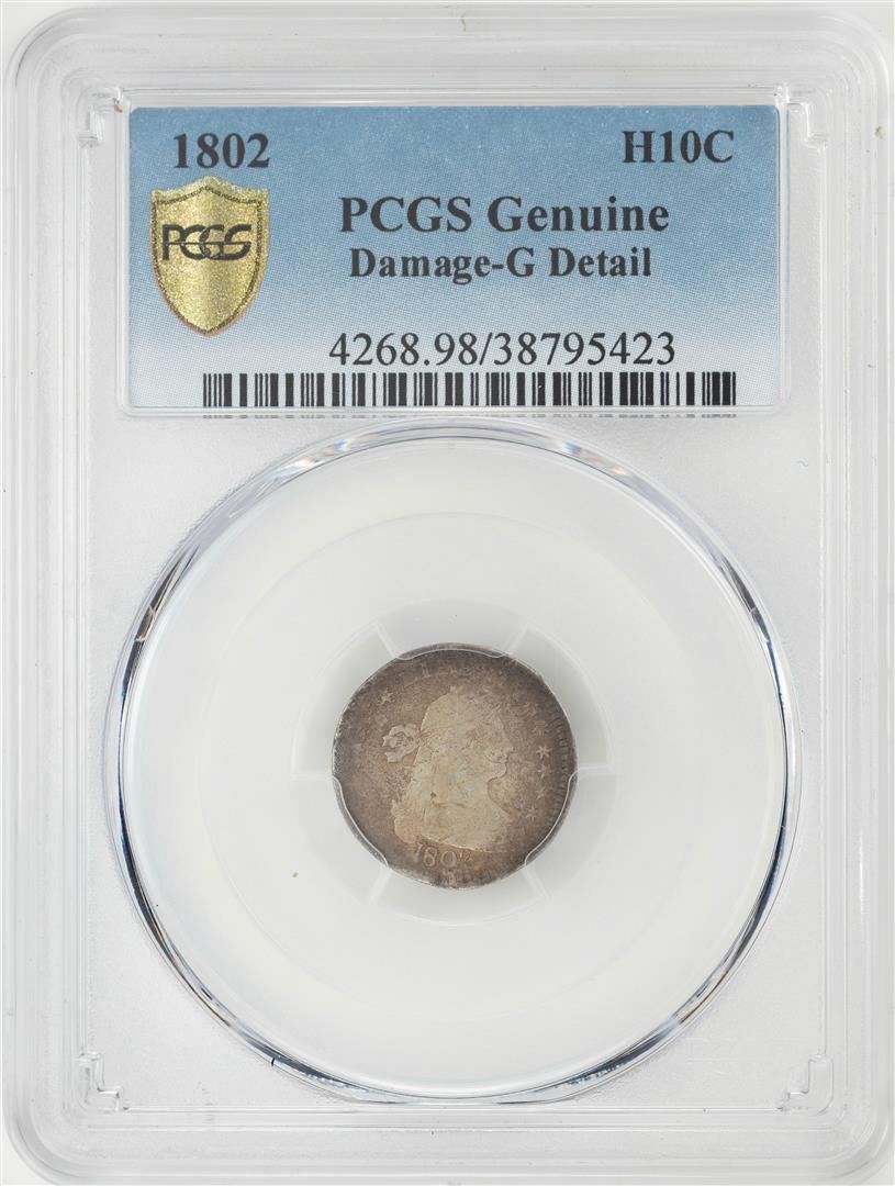One 1802 Draped Bust Half Dime Coin PCGS Genuine Details. PCGS Graded.