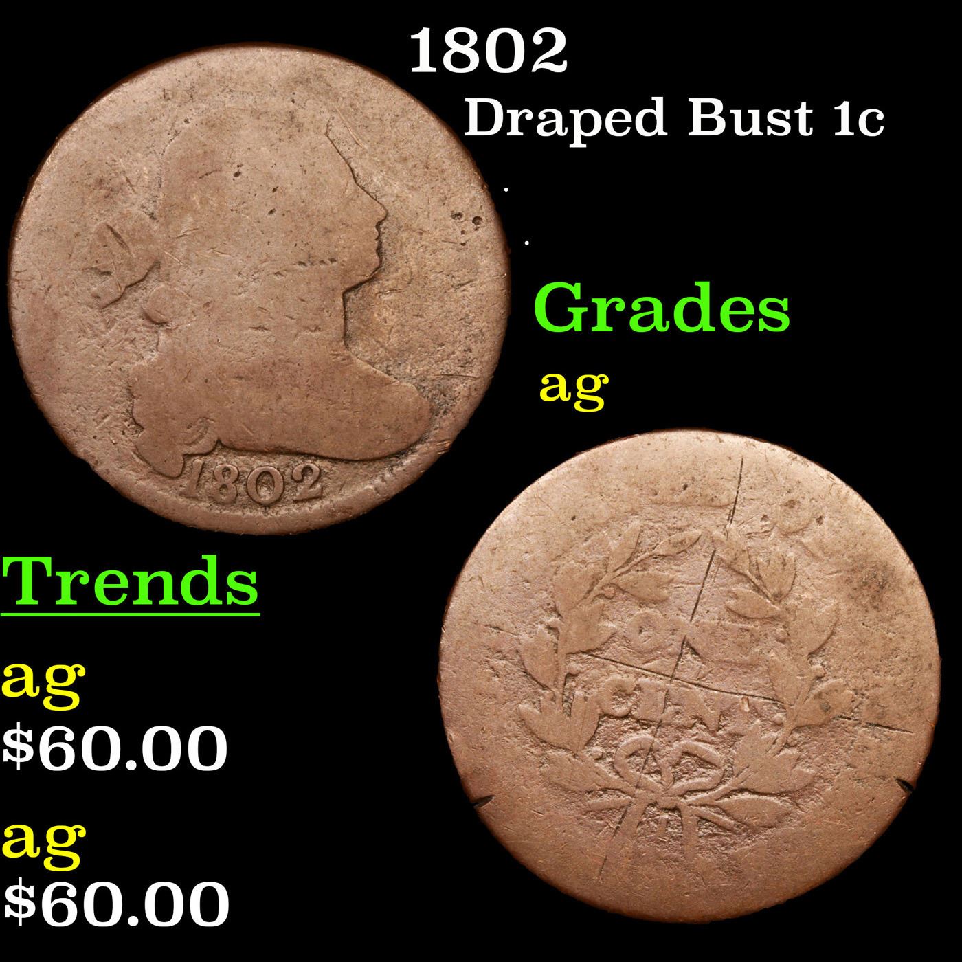 1802 Draped Bust Large Cent 1c Grades ag.