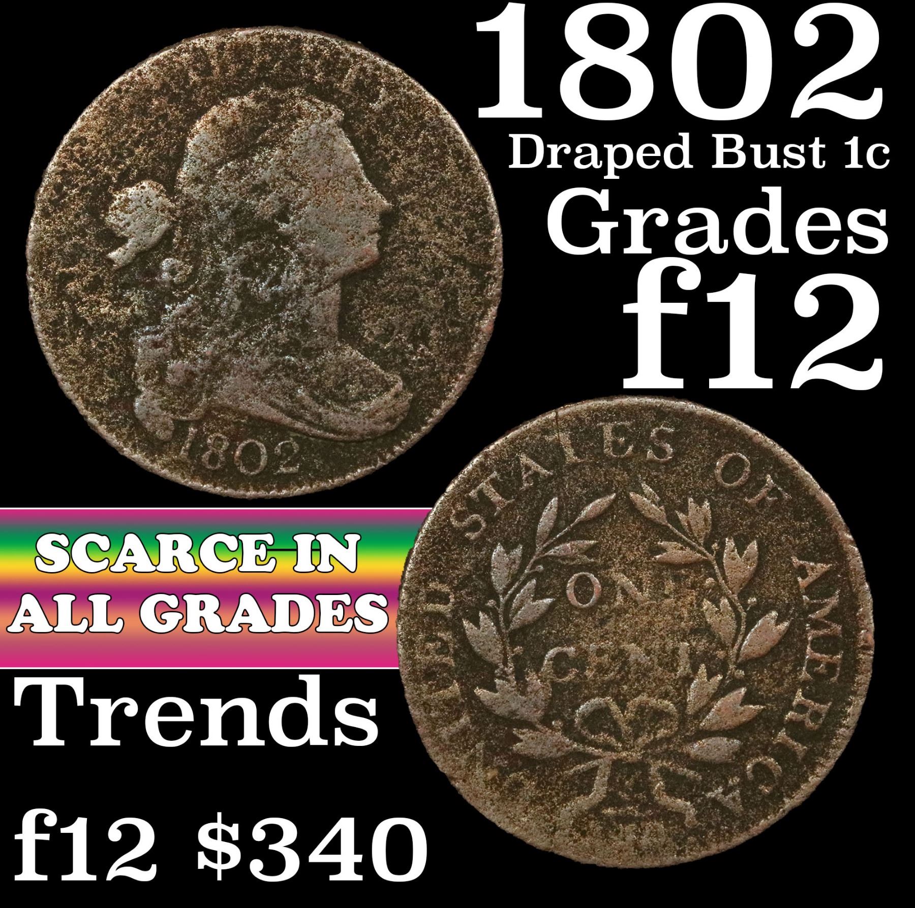 1802 Draped Bust Large Cent 1c Grades f, fine.