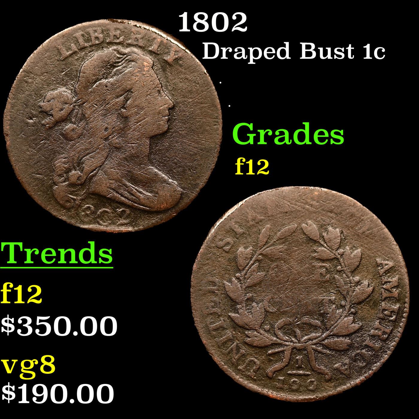 1802 Draped Bust Large Cent 1c Grades f, fine