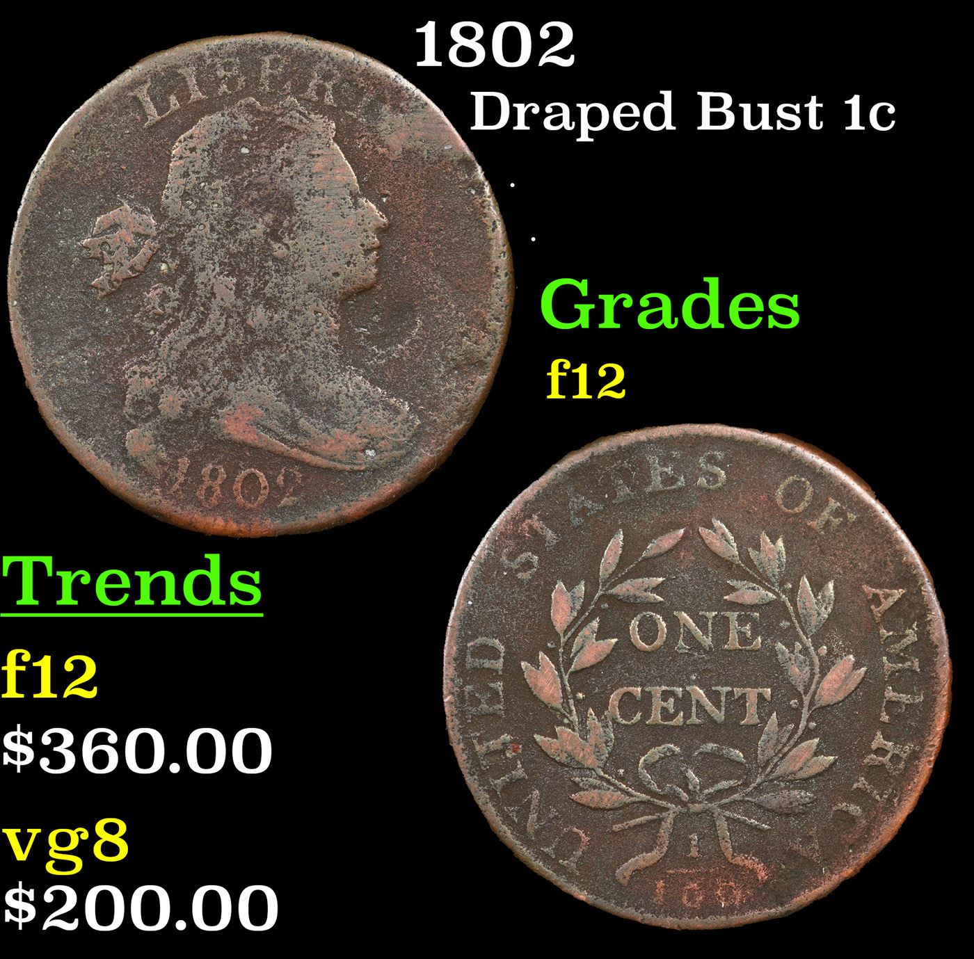 1802 Draped Bust Large Cent 1c Grades f, fine