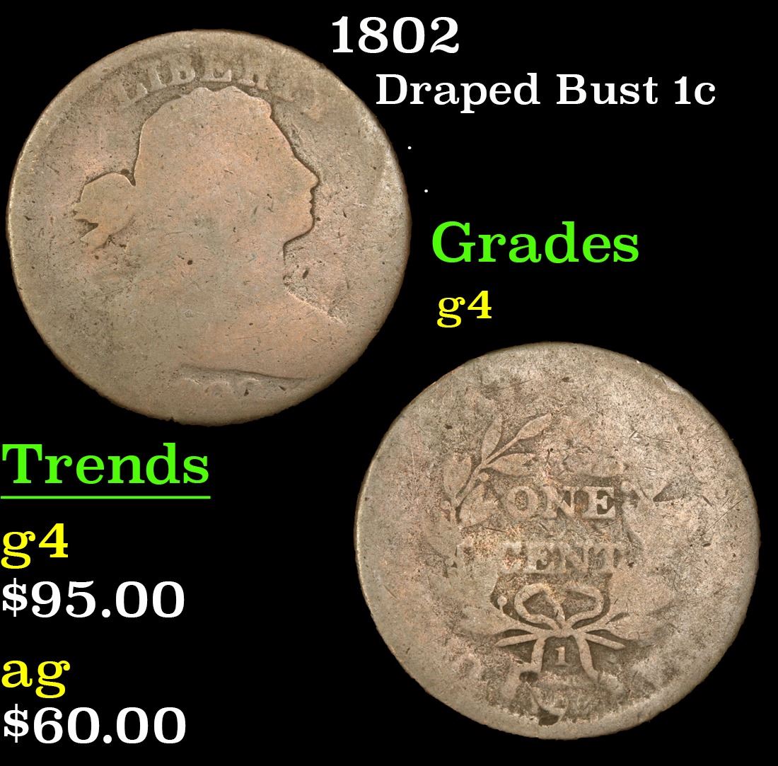 1802 . . Draped Bust Large Cent 1c Grades g, good.