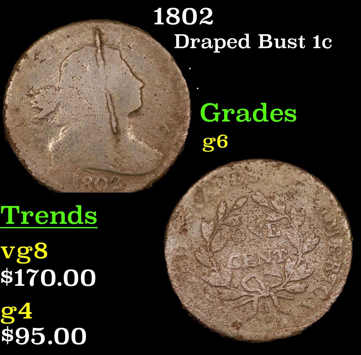 1802 . . Draped Bust Large Cent 1c Grades g+.