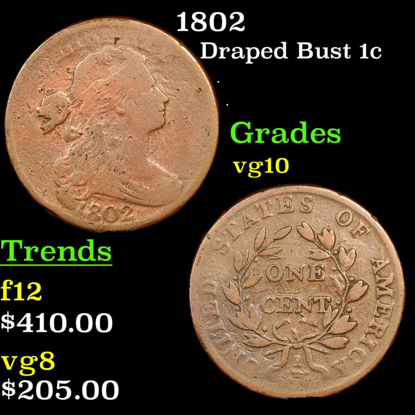 1802 Draped Bust Large Cent 1c Grades vg+.