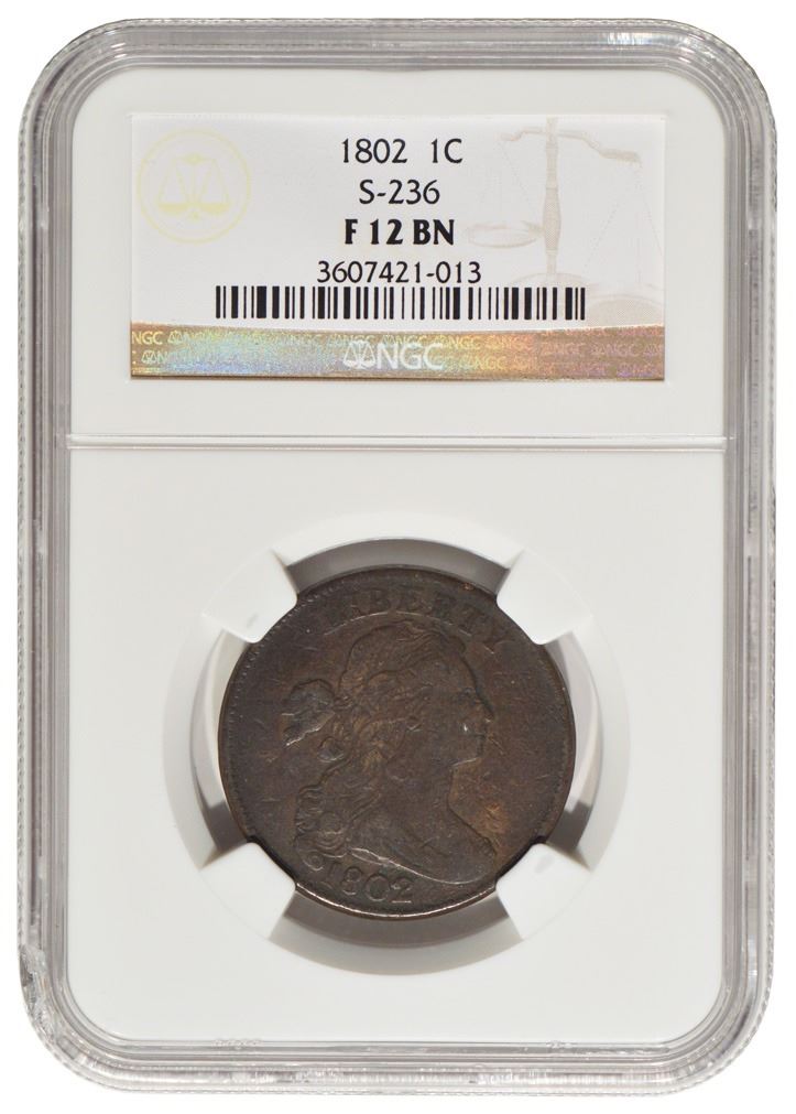 One 1802 Draped Bust Large Cent NGC F12BN.
