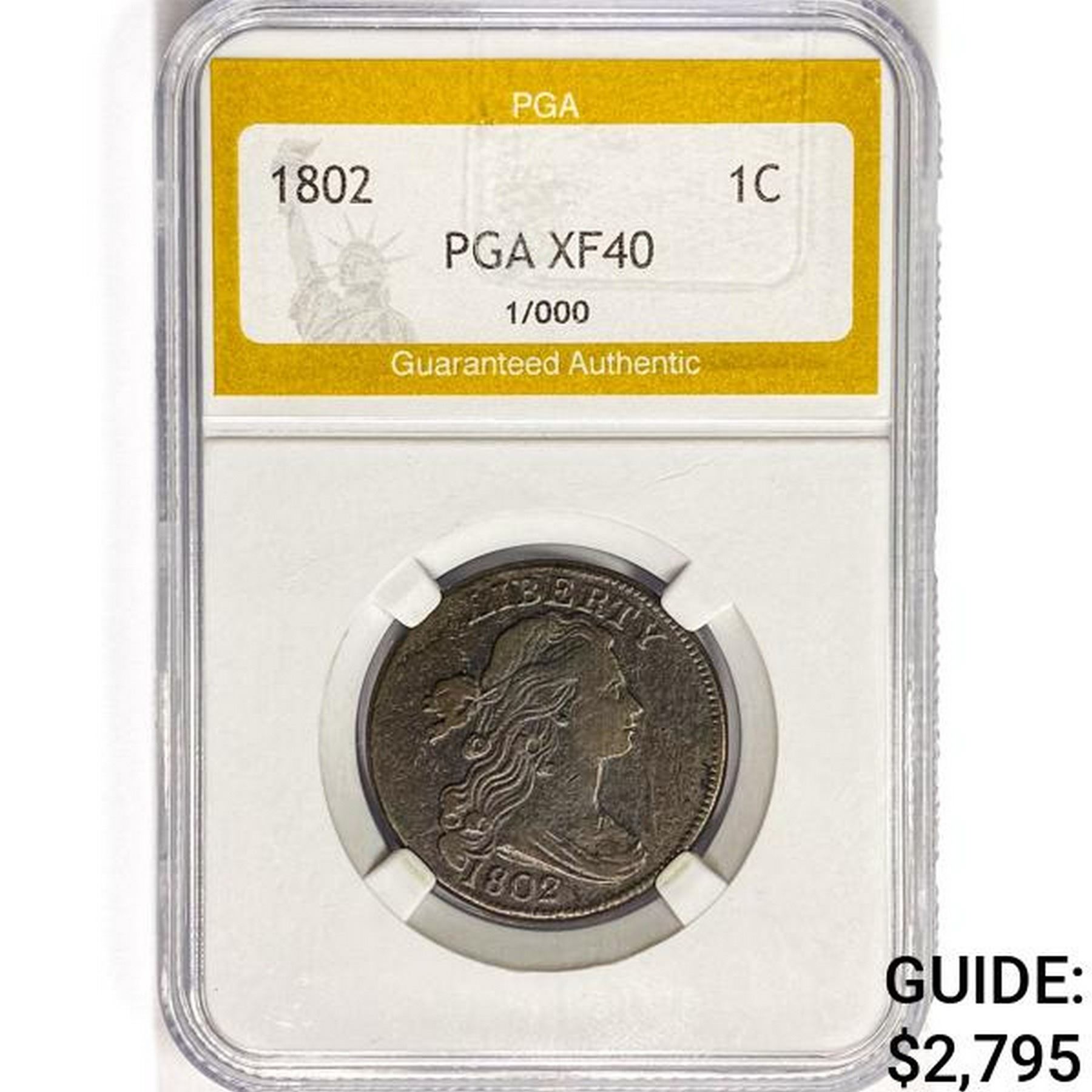 1802 Draped Bust Large Cent PGA XF40 1/1000