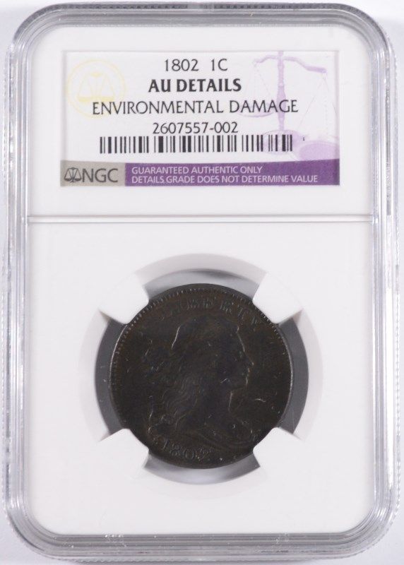 1802 LARGE CENT, NGC AU DETAILS, VERY RARE IN THIS GRADE, NICE BROWN COLOR