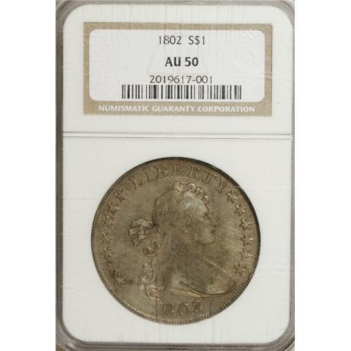1802 S$1 Narrow Date AU50 NGC. B-6, BB-241, R.1. A ple