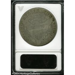 1802 S$1 Narrow Date Good 4 ANACS. B-6, BB-241. A <B>1802 S$1 Narrow Date Good 4 ANACS.</B></I> B-6, BB-241. A common variety that is distinguished by the date appearing as 18 02, and the right foot of the T in LIBERTY missing. There are only a couple of inconsequential marks at the left side of the reverse. A well worn, affordable example of this popular type. <BR><BR><B>Important notice:</B> Heritage usually auctions material at the rate of 200-250 lots per hour. On some occasions eBay Live bid software or the Internet may not be able to keep up with the pace of the auction. We recommend placing a realistic absentee bid now as insurance to avoid disappointment. Occasionally the auctioneer may eliminate or reject an eBay Live bid, and the auctioneer may also reopen a lot after the close of the eBay live bidding (usually because we missed an audience bid), and may reject your bid even if it shows you as the winning bidder. By bidding via eBay Live, you agree that Heritage may award the lot to another bidder at its sole discretion under the circumstances described above or any other reasonable circumstances. Since eBay bids are not shown to us until we open the lot on the floor, we treat those bids just like floor bids. In most cases the floor responds before the eBay bid is presented to us, due to Internet lag time, so for consistency we have made it a policy that floor bids are always considered first over tie eBay live bids. Also please note that all Heritage lots purchased through eBay Live carry a 20% Buyer's Premium. Please make sure you read the Terms and Conditions before you bid. This lot is being auctioned in conjunction with a live floor auction by Heritage Galleries & Auctioneers. All final auction and invoice information will be supplied by Heritage Galleries & Auctioneers, and all other information should be considered preliminary. Lot:6375