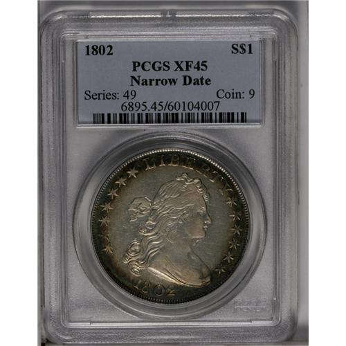 1802 S$1 Narrow Date XF45 PCGS. B-6, BB-241, R.1. The