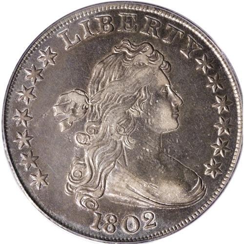 <B>1802 S$1 Narrow Date XF45 PCGS.</B></I> B-6, BB-241, R.1. This is the most common variety of all 1802 dollars, and it is one of the most plentiful varieties of the Heraldic Eagle design, an ideal candidate for date or type collectors. Deep gray surfaces are seen on each side with lighter silver color on the high points of the devices. Light abrasions are evident on the obverse, but the overall quality remains quite high.<BR><BR><b>Shipping:</b> Coins & Currency (<a target="_blank" href="http://www.heritageauctions.com/common/shipping.php">view shipping information</a>)