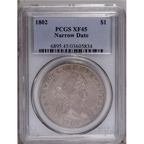 1802 S$1 Narrow Date XF45 PCGS. B-6, BB-241, R.3. The 1802[img border='0' src='http://www.heritageco