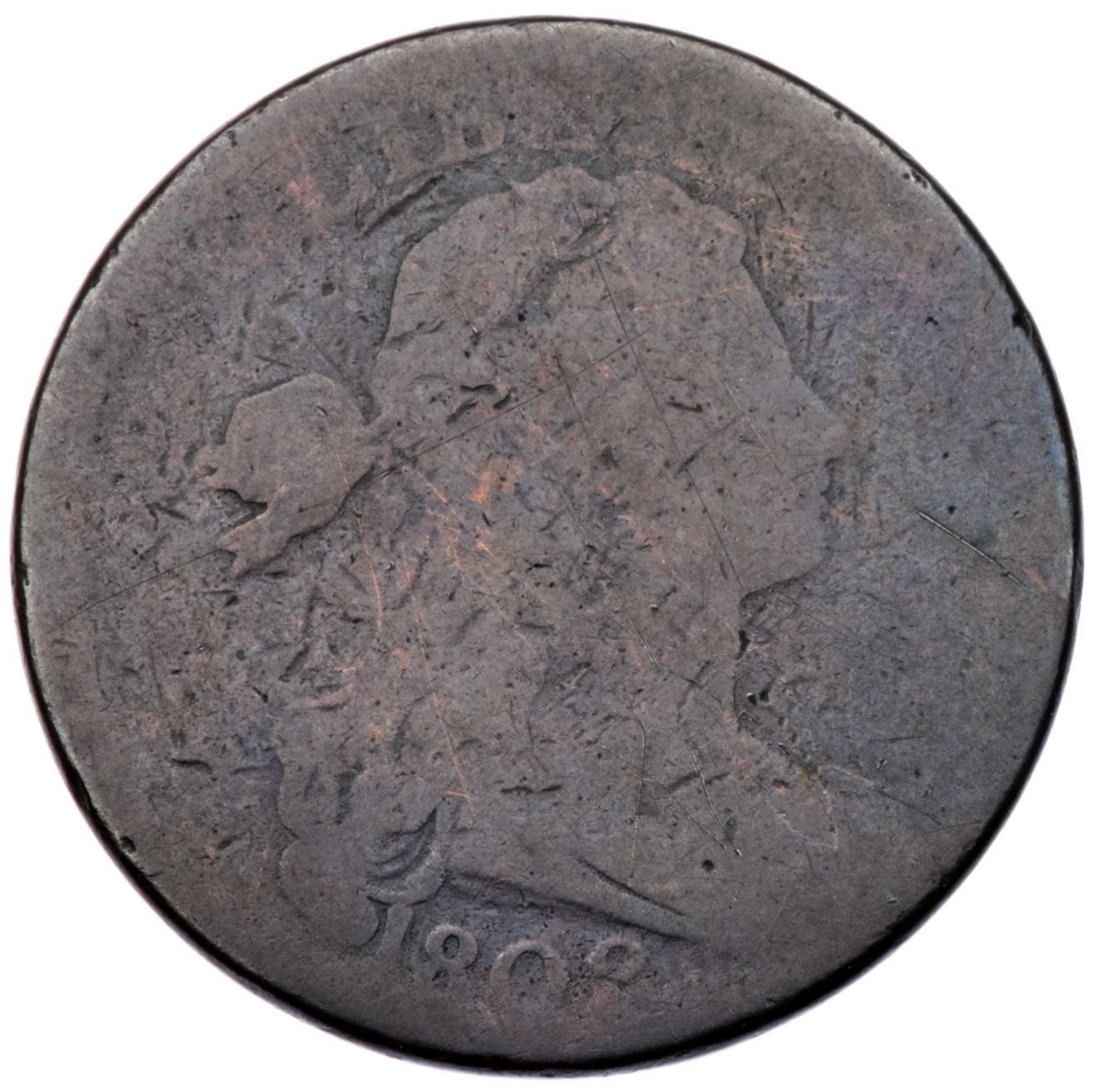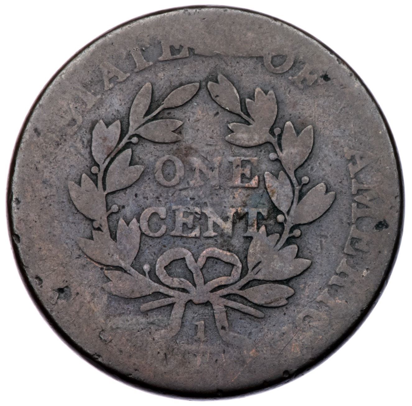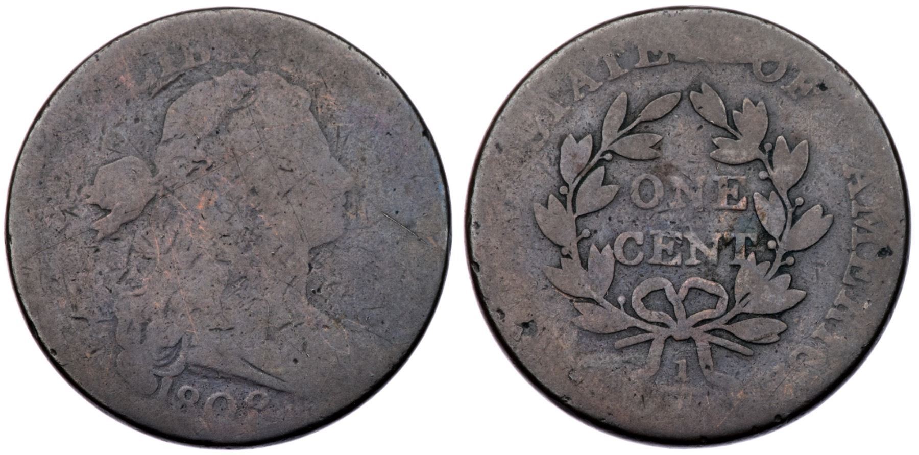 1802 S-225 R-3 AG3Glossy steel brown and chocolate. Smooth with no significant defects, just well worn. A shallow planchet chip at the right top of the M is a good identifying mark. TDS with a raised cud break that obliterates most of ES-O. Only three examples of the die state are known to us, and this one is comparable to the other two.Certificate Number: Pedigree: From the Fred H. Borcherdt Collection