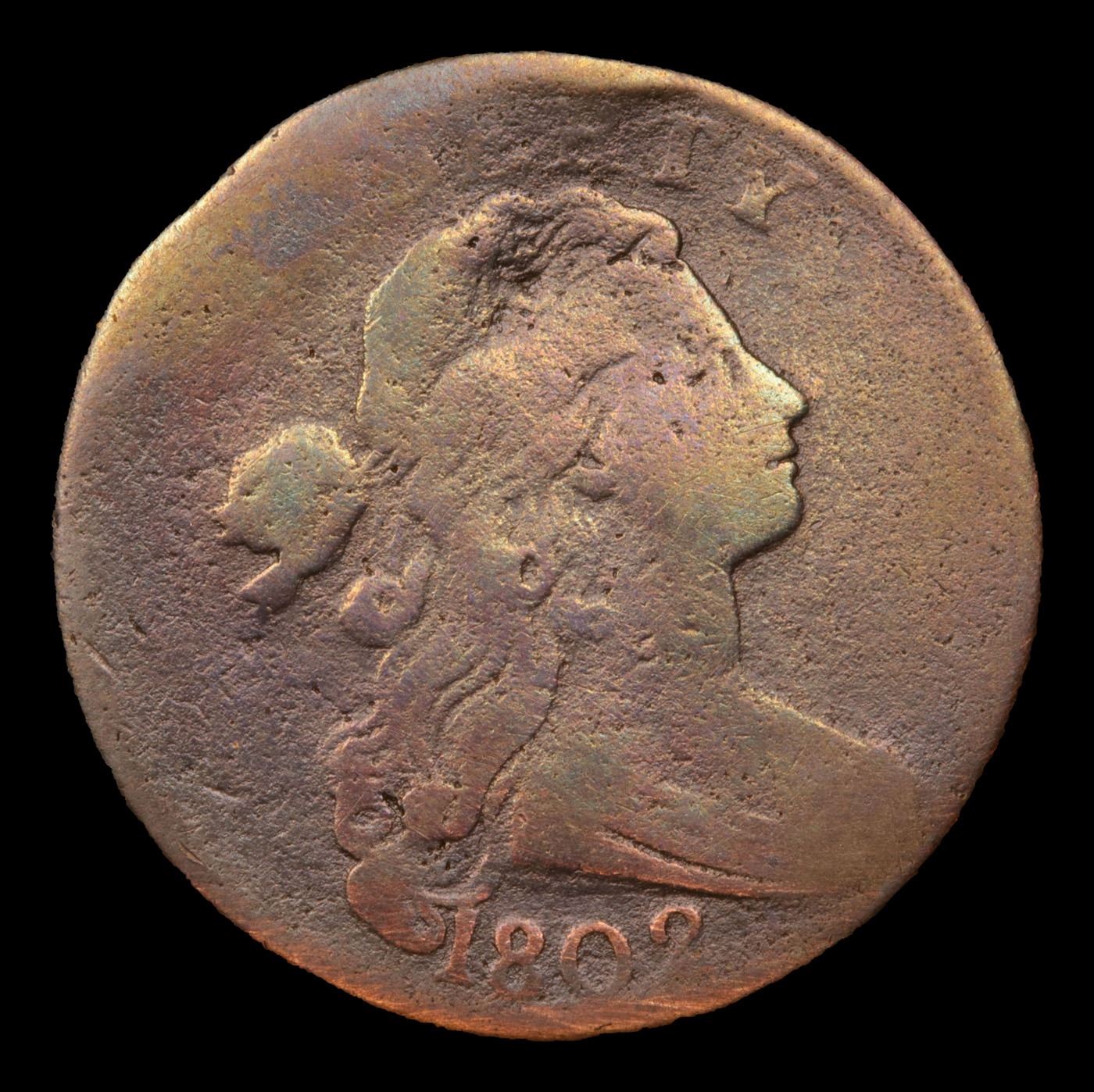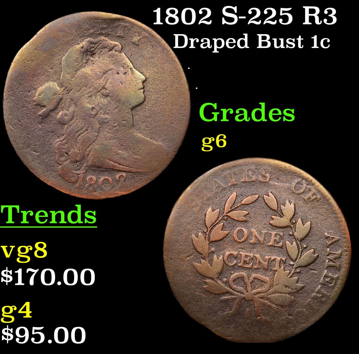 1802 S-225 R3 Draped Bust Large Cent 1c Grades g+.