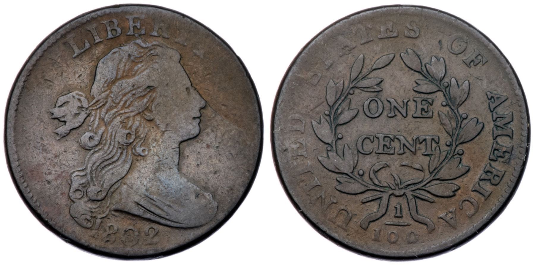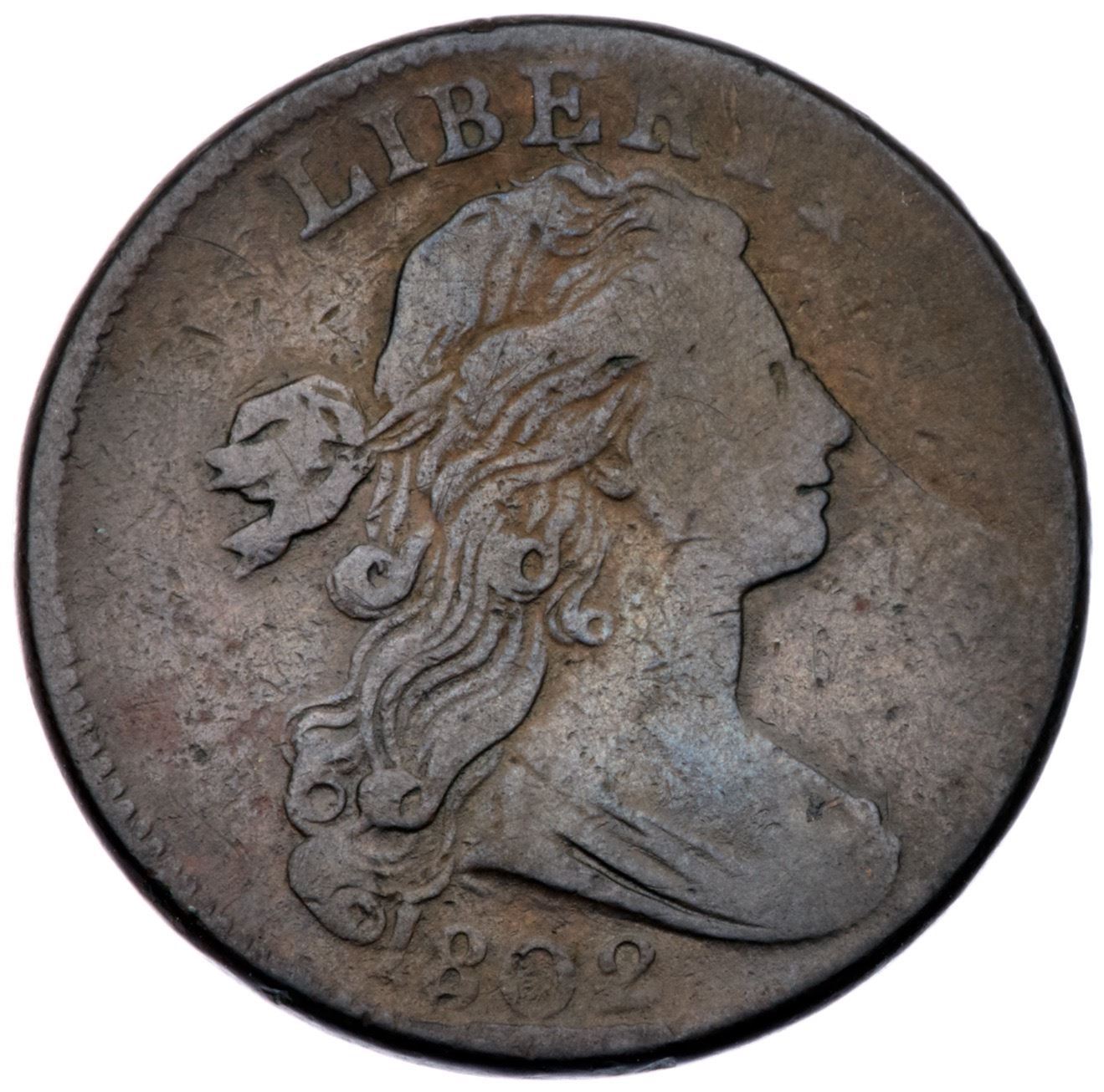1802 S-226 R-3 F12Glossy chocolate and steel brown. Smooth with trivial marks including a tiny planchet flake at the top of the E in UNITED that can help identify this cent. LDS, Breen state IV, with a clear die crack from the rim through BE and the hair and down the nose arcing to the rim before the end of the nose. Only six of this die state are known to us. Noyes graded F15 net VG10, his photo #37782.Certificate Number: Pedigree: Ex James E. Long 5/1984-Fred H. Borcherdt Collection