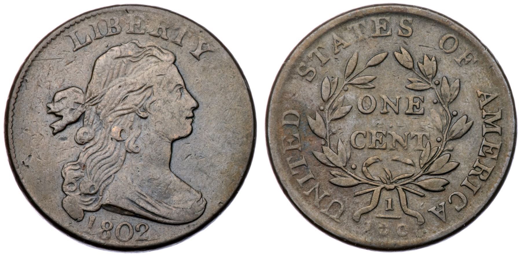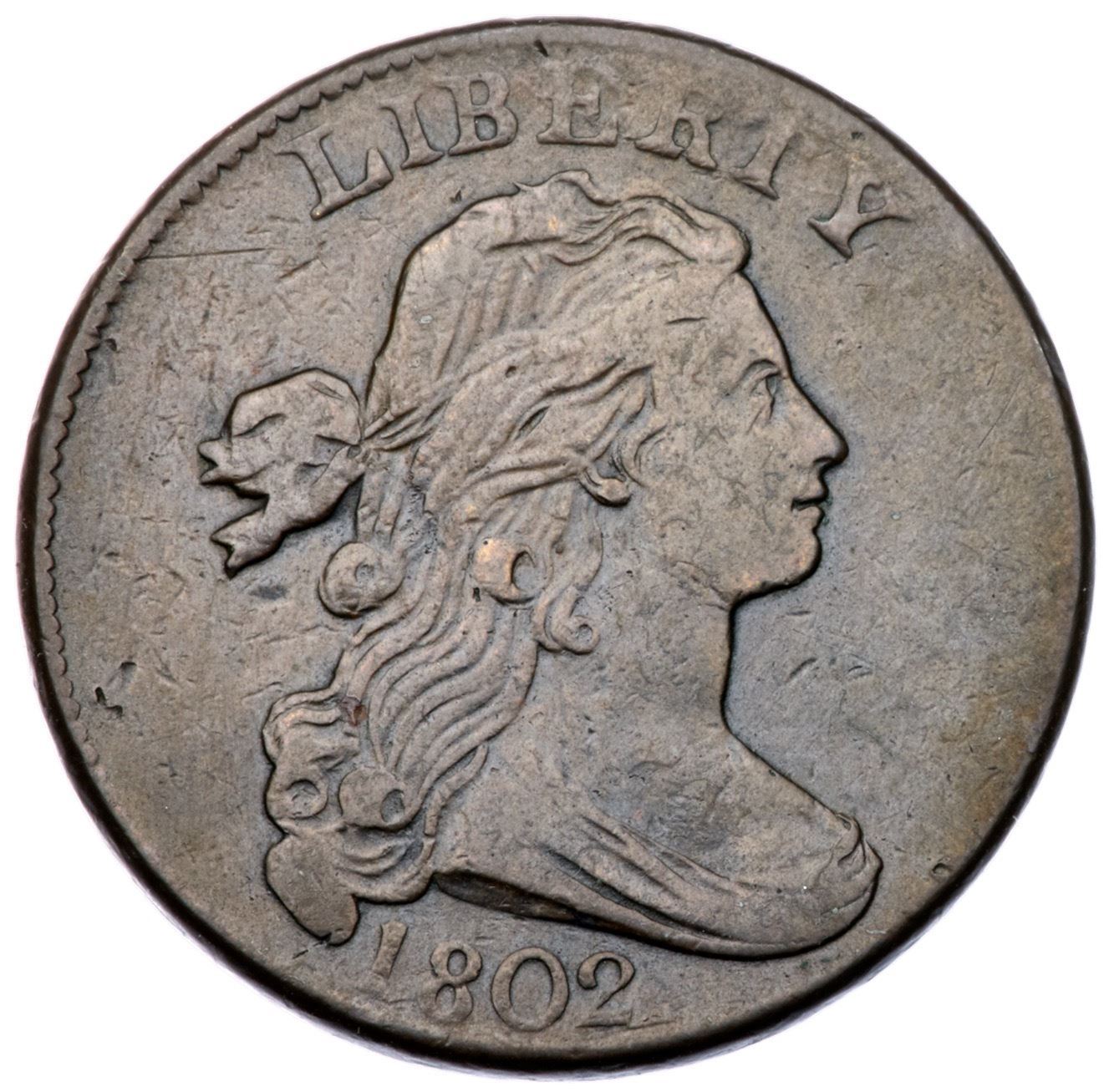 1802 S-229 R-2 F15+Slightly sharper with too many small contact marks for the higher grade, mostly high on the shoulder and in the field behind the portrait. Otherwise the surfaces are smooth and the toning is an attractive glossy brown and light olive with some darker olive brown in protected areas. MDS, Breen state III, with fine die cracks on both sides.Certificate Number: Pedigree: From the Fred H. Borcherdt Collection