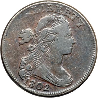 1802 S-232 R1. VF-20. Nice glossy chocolate brown with traces of frosty lighter brown toning around the portrait. No defects, just light, even wear. LDS, Breen state VI, with a strong cud break at ATE.
