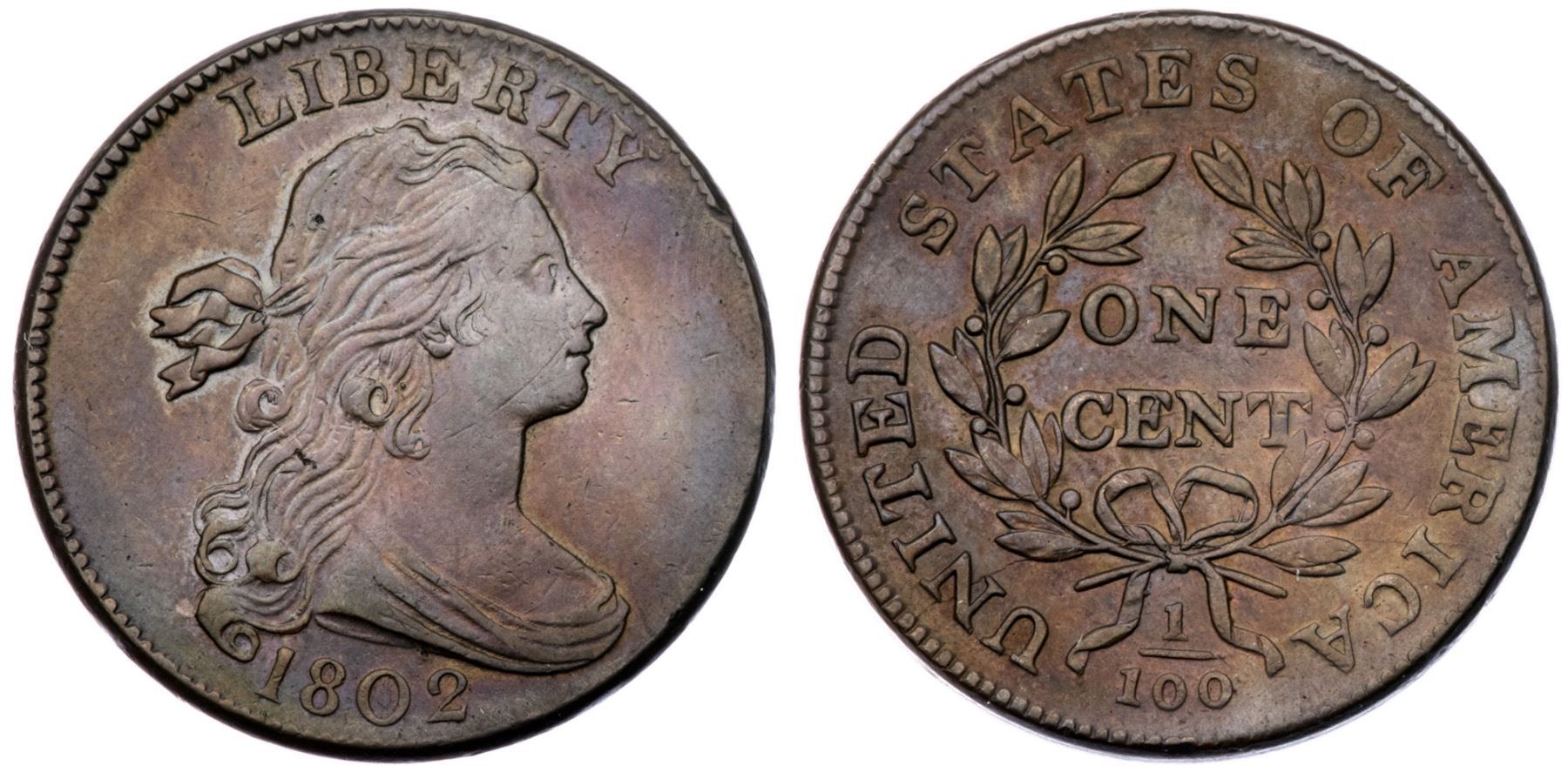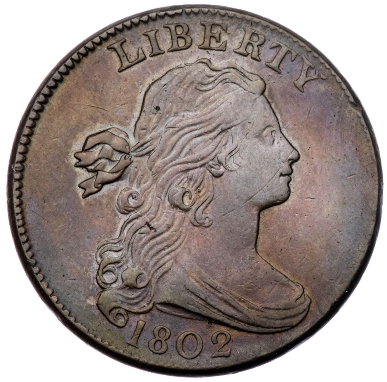 1802 S-237 R-2 VF30Ten points sharper with smooth, attractive surfaces, but there are some contact marks. The notable marks are a light diagonal scratch on the jaw, a rim nick right of the Y, a minor rim bruise off the chin, and a small rim bruise over ES in STATES. Glossy medium brown and light chocolate with traces of frost in protected areas. MDS, Breen state V, with light die cracks on both sides.Certificate Number: Pedigree: From the Fred H. Borcherdt Collection