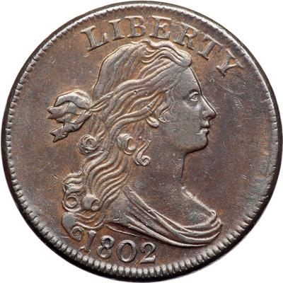 1802 S-242 R2. EF-45. Glossy chocolate brown with frosty light brown toning in protected areas, especially on the left side of the obverse. The surfaces are smooth and offer excellent eye appeal. Only a few trivial marks, including a very light contact mark in the field before the nose and a couple tiny nicks under AT in STATES. A premium example. EDS, Breen state I. A dull die crack passes through the tops of ERICA but the crack at NITE has not formed. Called EF45 and tied for CC#5 in the Bland census. Noyes says EF45 as well but tied for CC#4, his photo #22963. DWH #3031.