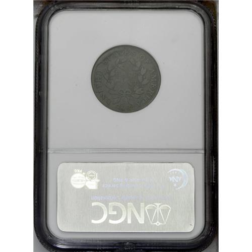 <B>1803<1/2 C> C-2, B-2, High R.4. Die State 7. Good 6 NGC. Good 6 EAC.</B></I> Close date, 03 crowded; Wide fraction. The usual late die state with a reverse rim break over STAT, just touching the left serif of the adjacent E. This is a splendid example with pleasing olive-brown color and excellent surfaces. Only a few minor abrasions and scratches can be found, and these are quite acceptable for the grade. Ron Manley has presented a convincing argument that this variety was the first struck of all 1803 Half Cents.<BR><I>Ex: Roger S. Cohen, Jr. (12/4/1982); Bob Yuell (2/22/1999).</B></I> Envelope Included.