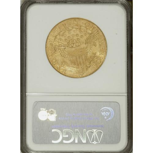 <B>1803 $10 Small Stars Reverse MS61 NGC.</B></I> Breen-6844, Taraszka-28, BD-3, R.4. In addition to the smaller sized obverse stars, this variety is also attributable by the position of the E in STATES which is almost entirely left of the break in the clouds. Of the six varieties of 1803 tens, this is the most frequently seen die combination. The 1803 is a scarcer date among early tens. Of the 15,017 pieces believed to have been struck of this date, more than half (7500-10,000 pieces) are believed to have been of the BD-3 variety. However, as with all early gold, attrition took a heavy toll. Today the most reliable estimate is that 150-200 pieces are extant of this die variant (making it an R.4). The Dannreuther-Bass reference mentions that only 93 auction appearances were recorded of this die marriage between 1990 and 2005.<BR> On this piece, one of the most immediately obvious elements are the strong striking details on each side. The hair curls are sharp and the breast feather definition is far above average for the type. That being said, the peripheral stars on the obverse do show some weakness. The coin is bright overall with yellow-gold color, and the fields display the often-seen semi-prooflikeness common to many early gold coins. There are a few shallow adjustment marks on the lower reverse that are worthy of mention, but these do not detract from the overall beauty of this important early ten.<BR><BR><b>Shipping:</b> Coins & Currency (<a target="_blank" href="http://www.heritageauctions.com/common/shipping.php">view shipping information</a>)