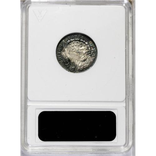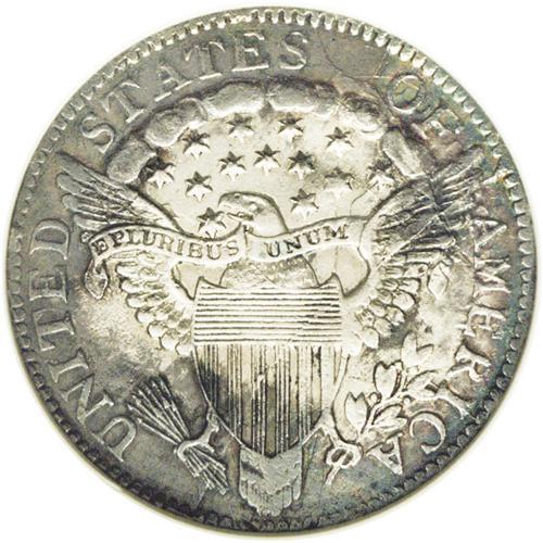 <B>1803<10C>--Corroded--ANACS. XF45 Details.</B></I> JR-4, R.5. Readily distinguishable by the 3 in the date tilting right and numerous die cracks on the right side of the reverse. Well struck with a couple of spots of corrosion and a mentionable indention near the center of the obverse. The overly bright surfaces have been enhanced with the addition of questionable blue and purple colors at the borders. Still, a highly collectible example.