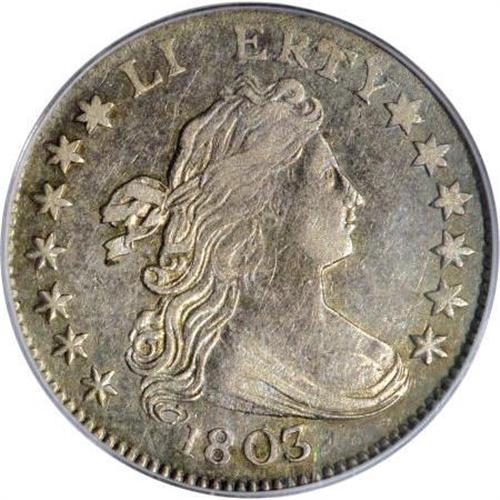<B>1803 10C VF35 PCGS.</B></I> JR-3, R.4. The 1803 has five die varieties, and all are very scarce to rare, as can be seen by a glance at the third party population data. Gently toned in lilac and autumn-gold with impressive detail on the eagle's wings. The B in LIBERTY is softly defined, as made since the slight die rotation places it opposite the eagle's tail. Population: 4 in 35, 15 finer (8/07).<I><BR>From The Beau Clerc Collection.</B></I><BR><BR><B>Coin Engraver:</B> Robert Scot<BR><BR><b>Shipping:</b> Coins & Currency (<a target="_blank" href="http://www.heritageauctions.com/common/shipping.php">view shipping information</a>)