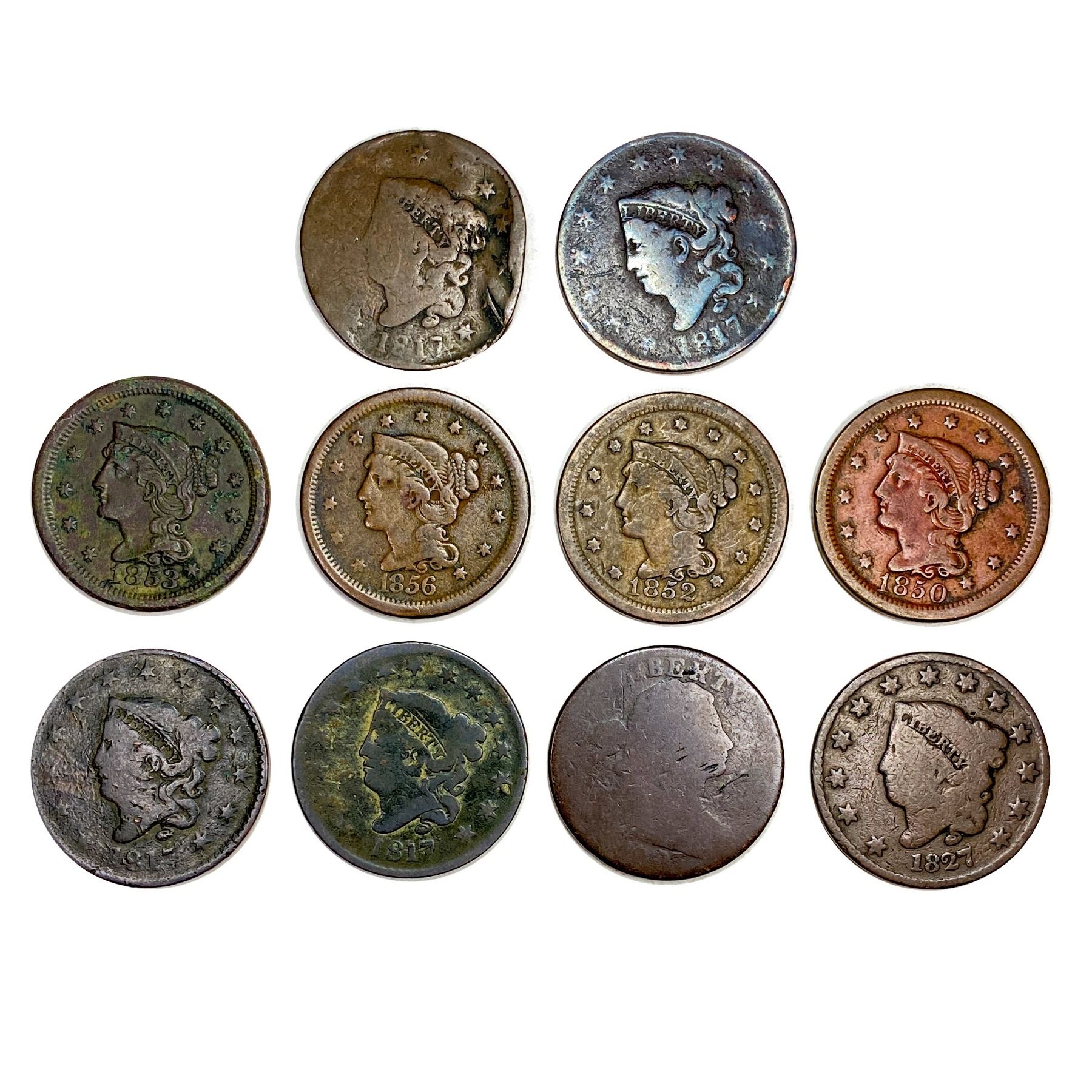 1803-1856 Early US Large Cent Lot [10 Coins]